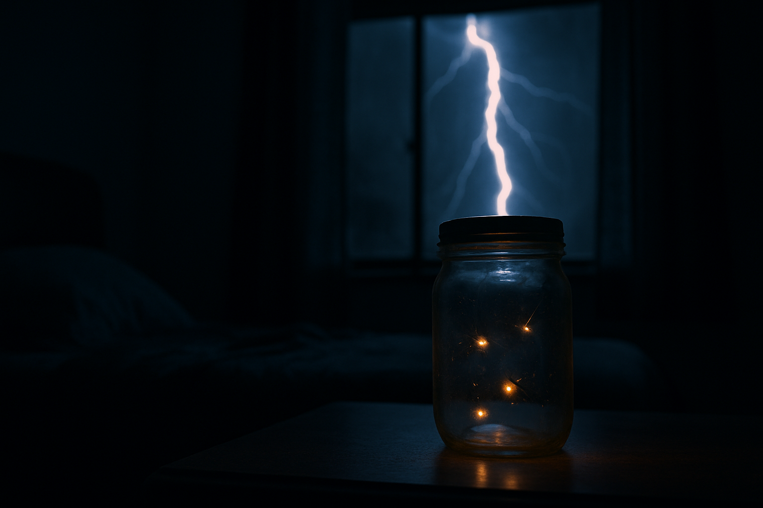 Then the light fades. By morning, the jar is dark and everything inside is dead. I kept doing it anyway. Every summer. Same jar. Same holes. Same dead fireflies by sunrise.